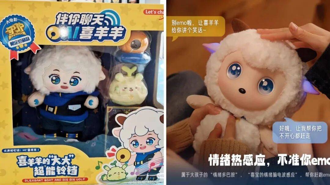 同时,以奥飞娱乐为代表的动漫企业,则其“喜羊羊”系列IP中嵌入AI能力,推出“超能铃铛娃娃”“哄睡AI喜羊羊”等产实现从IP消费到陪伴体验的延伸。